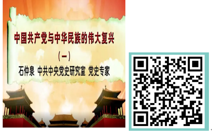 讲座简介:中国共产党按照十九大的规划部署,高举中国特色社会主义伟大旗帜,以人民为中心,全面从严治党,搞好党的政治建设、思想建设、组织建设、作风建设、纪律建设、制度建设,我们中国共产党到2050年如愿实现中华民族的伟大复兴就会指日可待。 中国共产党与中华民族的伟大复兴 主讲人:石仲泉 单位:中共中央党史研究室 集数:共6集 来源:超星名师讲坛,扫码可观看全系列 作者简介:北京市中国特色社会主义理论体系研究中心教授,博士生导师,毛泽东思想邓小平理论研究会会长,中共中央党史研究室原副主任,中国井冈山干部学院兼职教授,研究方向为中共党史、毛泽东思想和邓小平理论。曾参加过《关于建国以来党的若干历史问题的决议》起草小组工作。主编的《毛泽东的读书生活》等曾荣获国家图书奖等大奖。